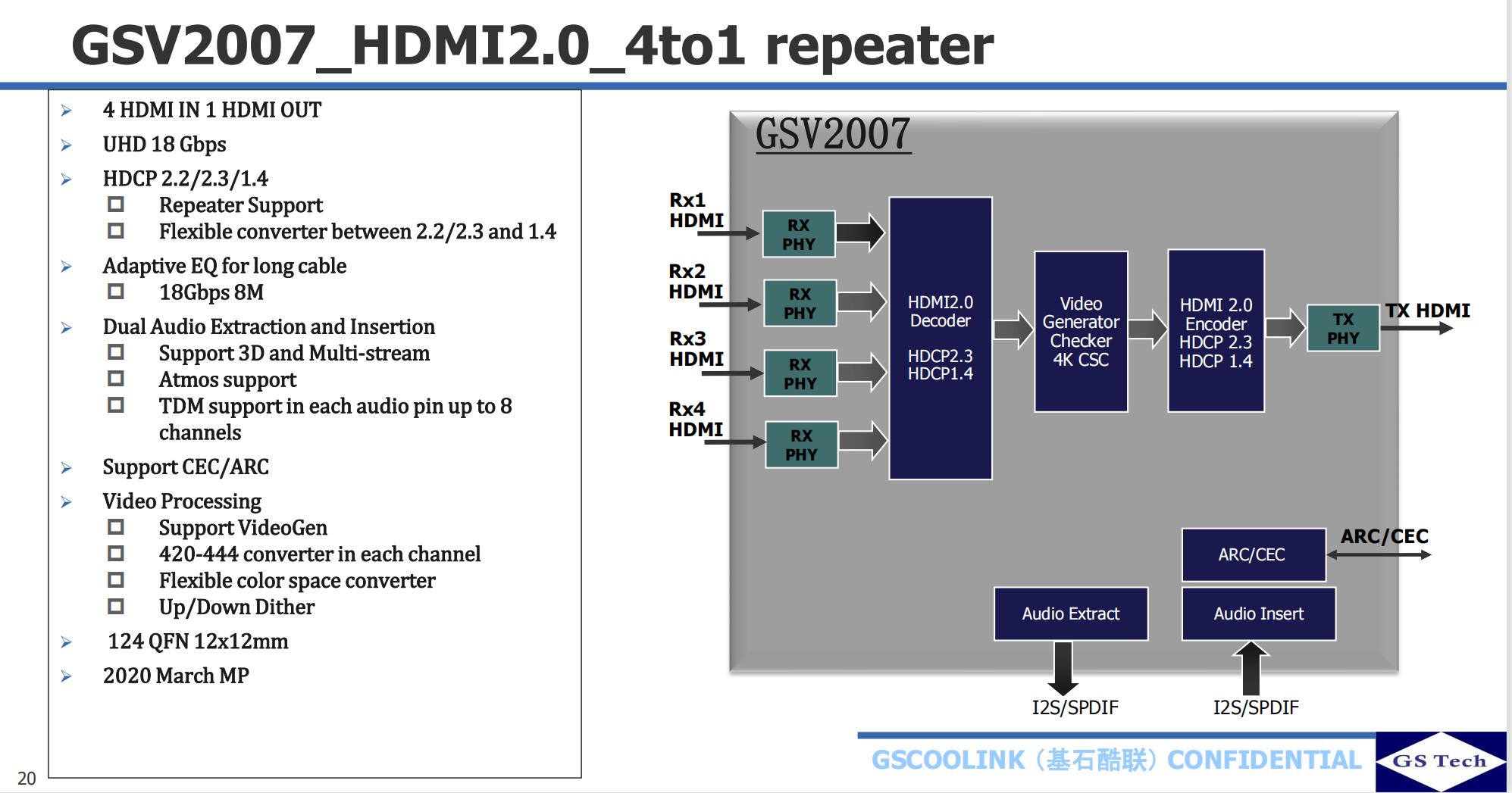 GSV2007_4 In to 1 Out HDMI2.0切換器及矩陣芯片