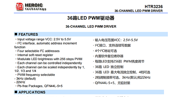 HTR3236_36路LED PWM驅(qū)動器