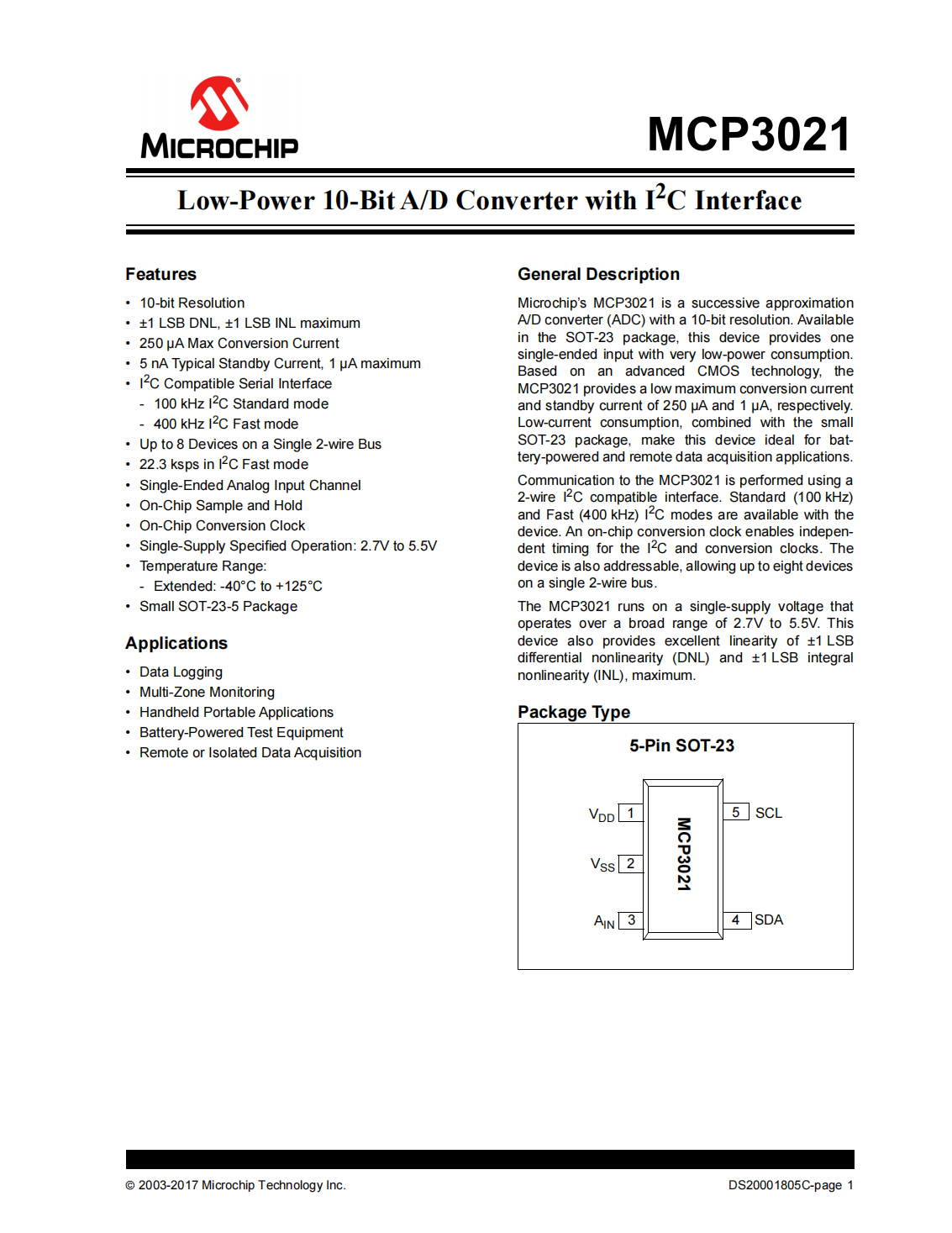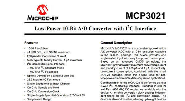 MCP3021A5T-E/OT_帶I2C接口的低功耗10位A/D轉(zhuǎn)換器