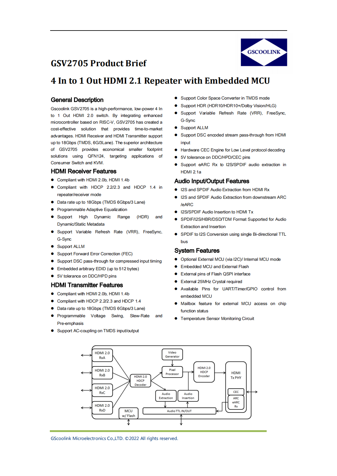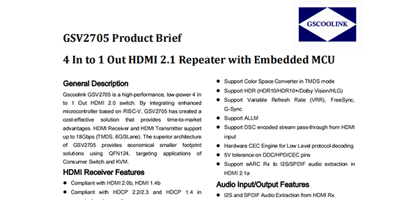 GSV2705_Gscoolink 4進1出HDMI 2.1切換器芯片