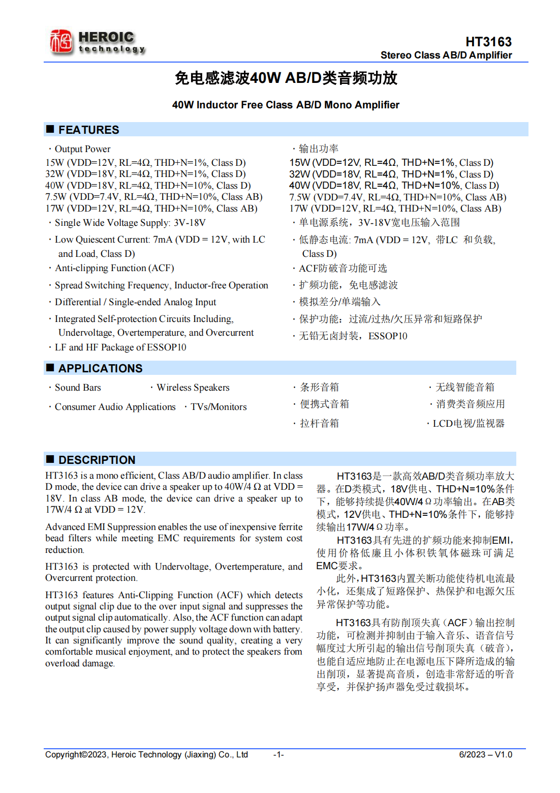 ?Low Quiescent Current:7mA(VDD=12V,with LC and Load,Class D)