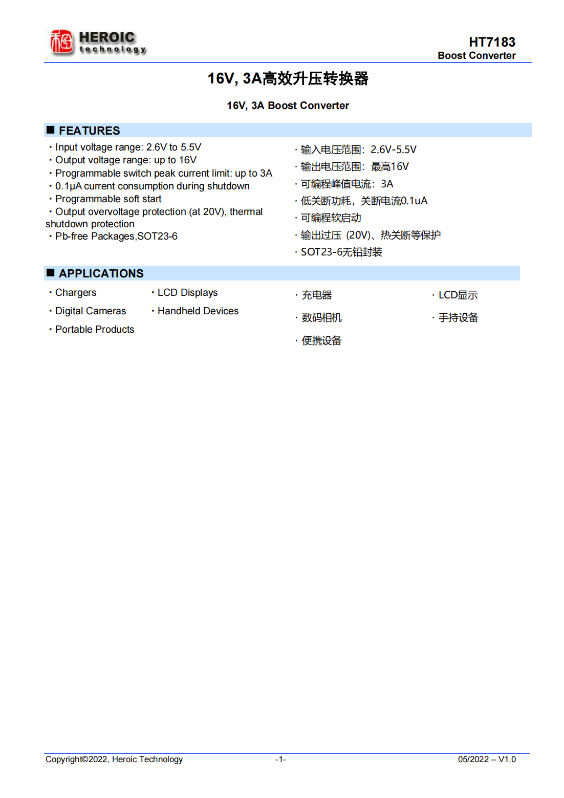 HT7183是一款高功率異步升壓轉(zhuǎn)換器,集成120mΩ功率開(kāi)關(guān)管,為便攜式系統(tǒng)提供高效的小尺寸解決方案。