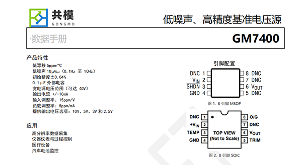 GM7400是一款精密基準電壓源,該器件兼具穩(wěn)健的工作特性和極低的漂移與低噪聲。利用先進的曲率補償,該帶隙基準電壓源可實現(xiàn)5ppm/°C的漂移和可預知的溫度特性,以及±0.04%的初始電壓準確度。它還提供了10μVP-P的噪聲和非常低的溫度循環(huán)遲滯。
