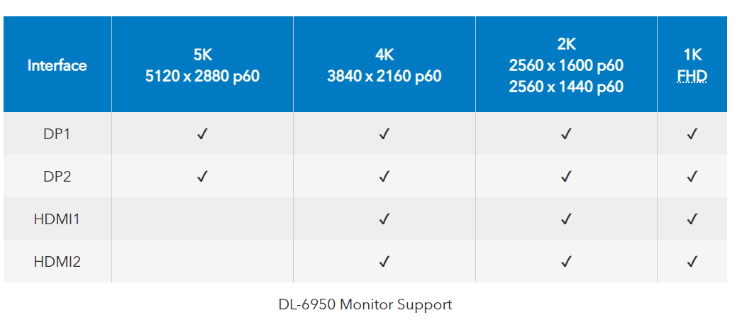 DL-6xxx具有兩個(gè)HDMI和DisplayPort PHY(HDP)接口,能夠輸出HDMI2.0或DisplayPort1.2a視頻信號(hào)。