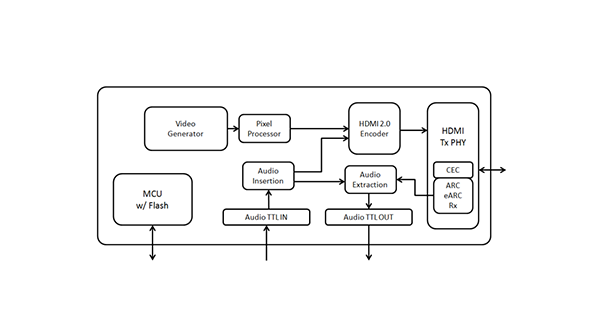 Gscoolink GSV2501 is a high-performance,low-power HDMI 2.0 transmitter with CEC,ARC Rx and eARC Rx.By integrating enhanced microcontroller based on RISC-V,GSV2501 has created a cost-effective solution that provides time-to-market advantages.GSV2501’s HDMI Transmitter supports up to 18Gbps(TMDS,6G/3Lane).The superior architecture of GSV2501 provides economical smaller footprint solutions using QFN64,targeting applications of HomeAV and ProAV.